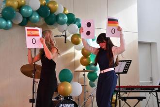 Allerdings wurde der aktuelle Spielstand auch stets durch zwei „Bühnenflitzerinnen“ mitgeteilt