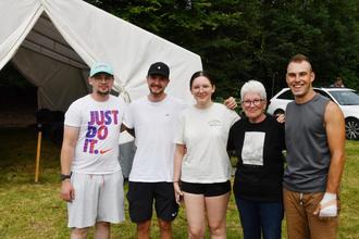 Eine Gruppe der Feuerwehr aus Lindens Parrtnerstadt Purgstall/Niederösterreich begrüßte Ehrenstadträtin Petra Braun (2. von rechts) beim 59. Feuerwehr-Camping der Freiwlligen Feuerwehr Großen-Linden in der Grube Fernie. Die Gruppe der Großen-Lindener Partnerwehr nahm in guter Tradition am Camping teil und besichtigte auch das neue Gefahrenabwehrzentrum in Gießen.