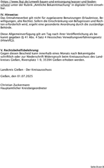 Diese Allgemeinverfügung ist zudem auf der Internetseite (https://www.lkgi.de/umwelt-bauen-und-entsorgung/wasser-und-boden-schutz) unter der Rubrik „Amtliche Bekanntmachung“ in digitaler Form einsehbar.