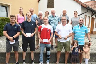 Mit 900 Euro unterstützt Hartmut Jahn (hintere Reihe 3. von rechts) aus Leihgestern die Jugendarbeit in neun Vereinen der Stadt. Bei dem Spendenbetrag handelt es sich um Spenden, die Jahn während seiner Zeit als Verwalter der Heimatstube in Leihgestern erhalten hat. Von diesen Spenden für die Nutzung und Bereitstellung der Heimatstube hat Jahn zudem auch Inventar angeschafft. Nachdem nun der Heimatverein die Heimatstube übernommen hat endete für Jahn die ehrenamtliche Verwaltertätigkeit, die dieser nach dem Tod von Walter Velten übernommen hatte. Hatten Velten und Jahn zuvor bereits mit Spenden Diakoniestation, Grundschule und Kindergärten bedacht so sollten nun zum Abschluß der Tätigkeit die Jugendlichen der Stadt profitieren. Die Anregung der Spendenempfänger hatte Marktfrau Petra Braun gegeben, welche stets freitags bei ihrem mobilen Marktstand an der Heimatstube hier von Jahn unterstützt wurde. Dieser überreichte Spendenumschläge an Nico Horvath (TV 1892 Großen-Linden), Fabian Merz (Jugendfeuerwehr Großen-Linden), Simon Mutz (Jugendfeuerwehr Leihgestern), Tanja Arnold und Dirk Heil (beide DLRG), Karl-Heinz Frank und Stefanie Schmidt (beide NABU), Jugendleiterin Vivian Strobl (Karnevalverein Harmonien Großen-Linden), Michael Knopf (TSG 1893 Leihgestern) und Julian Peter (TSV Großen-Linden). Weil ein Vertreter des Jugendmusikcorps der Freiwilligen Feuerwehr Großen-Linden fehlte wird diese Spende noch nachgereicht. ©Foto: Thomas Wißner