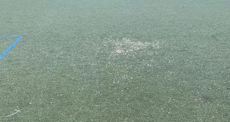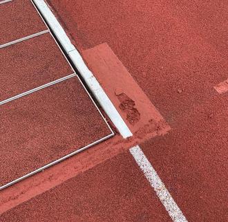 Erst im Mai wurden die schadhaften Stellen im Tartanbelag beseitigt. Gerade mal vier Wochen später sind wieder neue Schäden vorhanden.