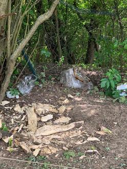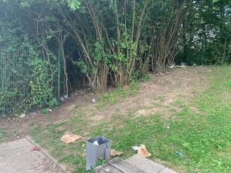 Auch hier liegt der Müll wieder außerhalb des Mülleimers, obwohl dieser in Sichtweite ist.