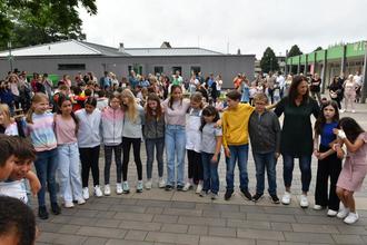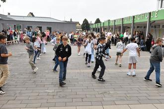 „Den heutigen Tag haben wir mit einem lachenden und einem weinenden Auge erwartet. Er ist ein besonderer Tag im Leben der Kinder der vierten Klassen. Die Grundschulzeit nähert sich ihrem Ende und ein neuer und spannender Lebensabschnitt steht bevor. Der heutige Tag steht unter dem Zeichen des Abschieds, es ist aber auch ein Neuanfang. Für unsere 70 Viertklässler beginnt nach den Sommerferien ein neuer spannender Abschnitt an einer neuen Schule, an der ihr dann wieder „die Kleinen“ seid“, so Schulleiterin Karin Schramm bei der einmal mehr auf dem Schulhof durchgeführten Verabschiedungsfeier für die Viertklässler. Tanzeinlagen und einen Flashmob gab es, bevor es dann in die Sommerferien ging.