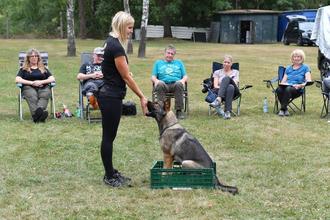 Am vergangenen Wochenende fand ein Unterordnungsseminar mit der frisch gekürten fünffachen WUSV-Weltmeisterin Tanja Lutz statt (2018 mit Mindy vom Ratsenheim, 2022 mit Polly vom Ratsenheim sowie 2023, 2024 und 2025 mit Chicca vom Haus Vax). Insgesamt nahmen 15 motivierte Hundesportler teil, davon 10 mit Hund und 5 ohne Hund. Vertreten waren verschiedenste Rassen: Gebrauchshunde wie Malinois und Deutsche Schäferhunde, Jagdhunde wie Labrador Retriever, Slowenischer Rauhbart und Irisch Setter sowie Familien- und Begleithunde wie Berner Sennenhund, Wolfspitz, Eurasier und Sheltie. Zu Beginn des Seminars stellte Tanja Lutz ihr Ausbildungskonzept vor, das besonderen Wert auf Freude, Motivation und eine vertrauensvolle Zusammenarbeit legt. Tanja Lutz hatte drei ihrer eigenen Hunde, darunter die Weltmeisterin Chicca vom Haus Vax, dabei und demonstrierte mit ihnen die Übungen anschaulich und praxisnah. Sie erklärte alle Übungen von den ersten Schritten an und holte dabei jeden Hundesportler auf seinem individuellen Ausbildungsstand ab - egal ob Einsteiger oder erfahrenes Team. Am ersten Tag standen die Fußarbeit mit Fokus sowie die technischen Übungen Sitz, Platz und Steh im Vordergrund. Unter Tanjas freundlicher und klarer Anleitung konnten die Teilnehmer ihre Übungen festigen oder gezielt verbessern. Am zweiten Tag folgten das Apportieren sowie der Aufbau und die Optimierung der Sprünge über Meterhürde und Schrägwand. Auch das Voraus wurde ausführlich erklärt und individuell angepasst trainiert. So konnte Tanja jedem Team wertvolle Tipps geben, um die Unterordnung noch harmonischer und präziser zu gestalten. Die Teilnehmer kamen aus einem großen Einzugsgebiet, das sich von Sandhausen bei Heidelberg im Südwesten über das Rhein-Main-Gebiet bis hin zu Orten im Taunus und der hessischen Rhön erstreckte, und zeigten großes Engagement. Für das leibliche Wohl der Teilnehmer war an beiden Tagen bestens gesorgt: Es gab leckeres Essen sowie eine vielfältige Auswahl an Torten, die für zusätzliche Energie und gute Stimmung sorgten. Eine Fortsetzung des Seminars ist für das kommende Jahr geplant.