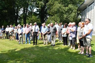 Begonnen hatte die Feier jedoch mit einem Totengedenken in der benachbarten Friedhofskapelle, wo mit Kreisstabführer Werner Rauber-Wagner ein Doppel-Weltmeister auf die Ereignisse vor fünf Jahrzehnten in Kerkrade zurückblickte,