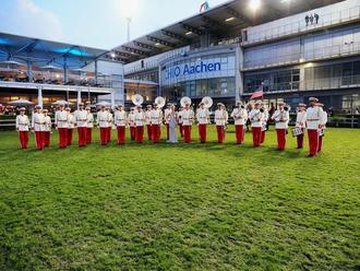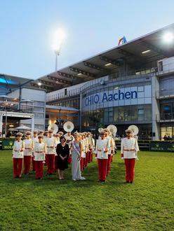 In Aachen beim internationalen Pferdesport-Turnier (Concours Hippique International Officiel CHIO) war das Musikcorps erstmals mit dabei und die Eröffnungsfeier wurde auch im Fernsehen übertragen. Es war dies am 2. Juli der wohl spektakulärste Auftritt vor der Sommerpause. Motto des CHIO war in diesem Jahr "It's a perfect match!" und dieses stand ganz unter dem Zeichen des Partnerlandes USA, welches in der Eröffnungsshow thematisiert wurde. Vor 40.000 Zuschauern in der ausverkauften Soers gab es einen sechsminütigen Auftritt an dessen Ende die Musiker noch den Schriftzug "CHIO" bildeten.