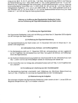 Der Eigenbetrieb Stadtwerke Linden wird mit Wirkung zum Ablauf des 31. Dezember 2025 aufgelöst und als Vermögen der Stadt fortgeführt.
