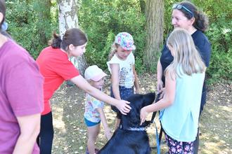 Nach einem Quiz und einem Spaziergang mit den Hunden gab es HotDogs zur Stärkung – und jede Menge Streicheleinheiten für die Vierbeiner.