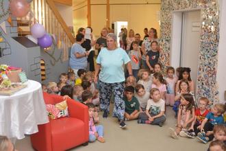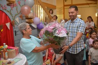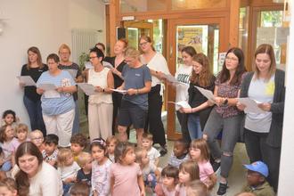 „Wir wollen feiern heut, Conny unsere Beste. Wir lassen dich nicht gerne gehen, doch du hast es Dir verdient“ stimmten die Erzieherinnen das Abschiedslied zur „40 Jahre die Flippers-Melodie“ an