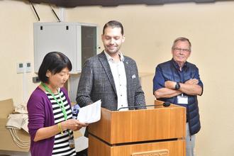 Begrüßung in den Lindener Ratsstuben (v.l.) Dolmetscherin Mori Kurenai, Bürgermeister Fabian Wedemann und DJG-Präsident und Ehrenbürgermeister Dr. Ulrich Lenz