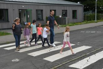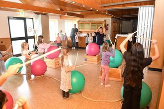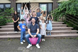 „Bist Du der Bürgermeister?“, fragte an der Eingangstür zum Betreuungstrakt der Wiesengrundschule in Leihgestern ein Schüler den jungen Mann der sich gerade daran machte, um mit der Betreuungskoordinatorin Gabriele Beutelspacher das Gebäude zu betreten. Bürgermeister Fabian Wedemann besuchte die Ganztagsbetreuung. Diese bietet aktuell 100 Schülern, darunter auch einige der künftigen Erstklässler ein Ferienprogramm unter dem Motto „Stadt, Land, Fluß“. Im Vorfeld der Begegnung mit Wedemann hatten die Schüler die Möglichkeit Fragen aufzuschreiben, die während einer Gesprächsrunde in der Mensa dann verlesen wurden. Auch konnten direkt Fragen an das Stadtoberhaupt gestellt werden. Der Gesprächsrunde schloß sich eine Trommelvorführung von „Drum live“ unter der Leitung von Sabine Borschel im Anbau der Volkshalle sowie ein Fußballspiel mit dem Bürgermeister an.