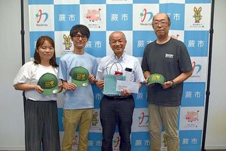 Bürgermeister Hideo Yoritaka (2. von rechts) mit dem Betreuerteam bedankt sich in eienm Schreiben