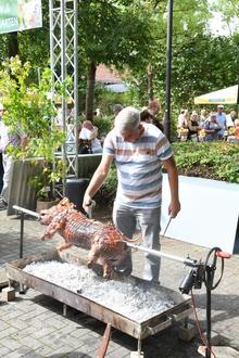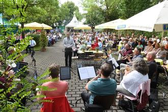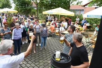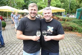 derweil der ehemalige Stadtfestwirt Philipp Arnold V. (rechts) seinem einstigen Mitstreiter Sascha Homfeld (links)zu einem gelungenen Stadtfest mit einem Prosit im Bier- und Weingarten gratulierte. ©Fotos: Thomas Wißner