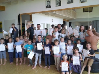 Der zweite Tag fand im Studio von Frank Durst in Lich statt. Dort konnten die Kinder vor allem ihre Beweglichkeit trainieren und lernten u.a. einfache Techniken, um sich im Ernstfall aus körperlichen Konflikten zu befreien. Voller Stolz präsentierten die Kinder am Schluss ihre Zertifikate. Das Projekt wurde – wie bereits im vergangenen Jahr – vom Förderverein Kita Regenbogenland Linden e.V. finanziert und wird jährlich von der Stadt Linden bezuschusst.
