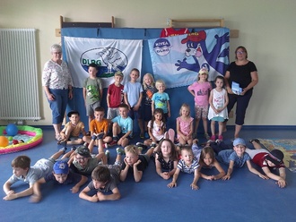 Schon eine Woche später und pünktlich zum Beginn der Freibadsaison waren zum ersten Mal die Teamerinnen der DLRG Ruth Biehl-Franze und Tanja Arnold zu Gast in der Kita. Spielerisch vermittelten die beiden den kommenden Schulkindern über ein Riesenmemory die Baderegeln, zeigten anhand von Schaubildern Gefahren auf und erarbeiteten gemeinsam mit den Kindern richtiges Verhalten am und im Wasser. Grund für die Informations- und Aufklärungskampagne der DLRG ist, dass nur noch jedes zweite Kind im Grundschulalter sicher schwimmen kann. Stolz nahmen die Kinder zum Schluss ihre Urkunden, die Baderegeln und ein kleines Geschenk in Empfang.
