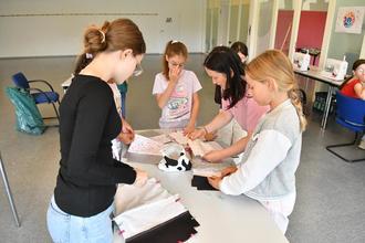 Neun Ferienkinder nähten im Jugendzentrum unter der Anleitung der an der Burgschule tätigen Schulsozialarbeiterin Rosali Meyer Kosmetiktäschchen und Kleinigkeiten. Am Vortag waren es sieben Fereinkinder sie Turnbeutel und Täschchen mit Reißverschluss nähten.