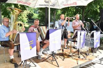 Für ausgelassene Stimmung beim Frühschoppen sorgten die "Fränkischen Wirtshausmusikanten" ©Fotos: Thomas Wißner