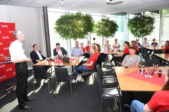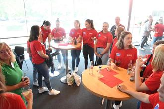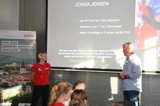 Der mittlerweile vierte Sponsorenabend der Handballerinnen der TSG 1893 Leihgestern fand bei den Stadtwerke Gießen (SWG) statt. Der Hessenmeistertitel 2023 der Mannschaft von Trainerin Jonna Jensen und der damit verbundene Aufstieg in die 3. Liga veranlaßte nach den Worten des Leiter Marketing & Kommunikation Uli Boos auch die Stadtwerke dazu sich weiterhin und nunmehr noch etwas stärker bei den Handballerinnen als Sponsor einzubringen.
