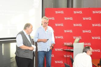 zudem interviewte Faber mit Volker Heine (links) und Jens Schleitzer zwei Sponsoren, die bereits über Jahrzehnte hinweg die TSG unterstützen. ©Fotos: Thomas Wißner