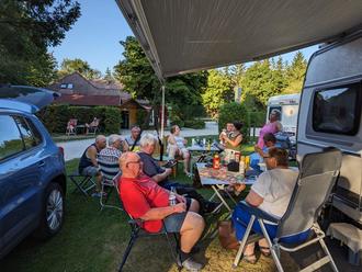 Lindens niederösterreichische Partnerstadt Purgstall besuchen derzeit die beiden Großen-Lindener Familien Wolfgang Hofmann und Ulrich Weihrauch. Auf dem Besuchsprogramm während des Aufenthalts standen dabei eine Wanderung durch die Erlaufschlucht und gerne folgten die Familien einer Einladung des Obmann Mostviertel grenzenlos und Träger der Ehrennadel der Stadt Linden, Josef Auer. Eine Fahrt zum Lunzer See mit Bootsfahrt auf dem See, ein Tag auf dem Almhaus Hochbärneck mit Kinderspielparadies wie auch die traditionelle Wohnwagenparty auf dem Campingplatz bei „Hofi“ mit allen Purgstaller Freunden (Foto) rundete den Besuch in der Partnerstadt und bei den Freunden im Mostviertel ab. Ein besonderer Spaß war die Teilnahme am Badfest im Purgstaller Erlauftalbad mit Livemusik, Wettrutschen und Sautrogrennen. ©Foto: Thomas Wißner