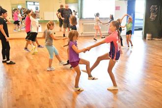 Insgesamt 16 Ferienkinder nahmen am Rock'n'Roll Tanzkurs teil und lernten bei fetziger Musik und viel Spaß die ersten Schritte.