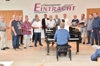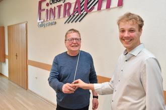 Stabwechsel bei ProChoLi des Gesangverein Eintracht Leihgestern und den Männerstimmen EinLied. Im Eintrahct-Sängerheim reichte am vergangenen Samstag Werner Jung den Dirigentenstab für die beiden Chöre an Frank Kleffmann weiter. Dies erfolgte im Rahmen einer Abschiedsfeier in deren Verlauf Jung zum Ehrenchorleiter des Gesangverein Eintrahct ernannt wurde. Eintracht-Vorsitzende Sigrid Wieland geleitete durch das Abschieds- und Dankesprogramm für Werner Jung, der einst in jungen Jahren von 1972 bis 1976 den Männerchor und dann seit 2014 ProChoLi sowie seit 2019 Männerstimmen „EinLied“ leitete.