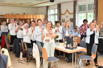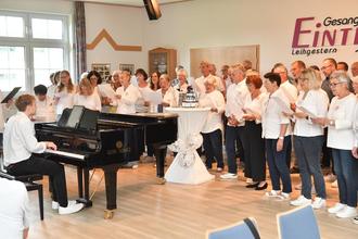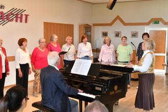 gefolgt vom Eintrahct-Frauenchor unter Brigitte Schlaud und Eintracht-Ehrenchorleiter Hans Schlaud am Klavier mit dem „Donauwalzer“ und „Wem Gott will rechte Gunst erweisen“
