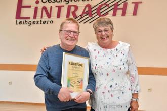 Ernennung Werner Jung zum Ehrenchorleiter der Eintracht durch Vorsitzende Sigrid Wieland