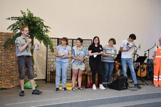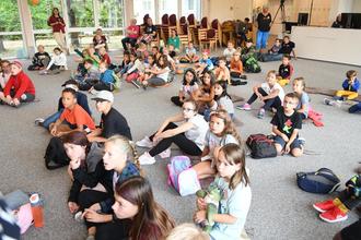 51 Ferienkinder konnten Joshua Lukas Thies und Annelie Sassenberg begrüßen. „Superduperspitzenklasse“ wurde gemeinsam unter der Begleitung von Daniel Schneider gesungen.