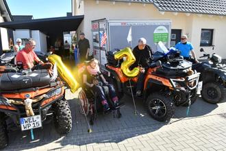 Mitglieder des einst in Linden beheimateten Quad/ATV Crew Gießen aka Quadkinder Mittelhessen gratulierten Salome zum 15. Geburtstag mit Quad-Fahrten für die Geburtstagsgäste.. Mutter Katja Pehlke hatte nach den Coronaeinschränkungen der letzten Jahre erstmals seit 2019 wieder eien richtige Geburtstagsfeier für ihre Tochter organisieren und dazu alle die ihr Nahestehen, ob nun bei der Betreuung, beim Fahrtdienst wie auch in der Pflege eingeladen. So war die Gratulantenschar groß, die sich im Neubaugeiet Nördlich Breiter Weg in Leihgestern einfand um Salome zu gratulieren. Das Geburtstagskind ist schwerstbehindert, sitzt im Rollstuhl, besitzt mit Pflegegrad 5 den höchsten aller Pflegegrade, der den höchsten Schweregrad körperlicher, psychischer und kognitiver Beeinträchtigungen bescheinigt. Rewe-Marktbetreiber Alexander Marchel hatte Speisen und Equipment in Form eines Kühlwagens gesponsert. ©Foto: Thomas Wißner