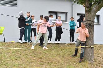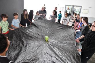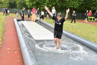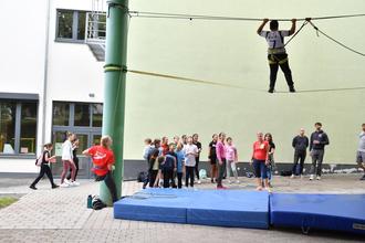 Teamgeist stärken und soziale Kompetenzen fördern. Darum geht es bei dem bereits seit zwei über Jahrzehnten von der Hessischen Sportjugend in Kooperation mit hessischen Schulen jährlich an bis zu 13 Schulen durchgeführten „Sportsfun Teamday“. Erstmals fand dieser nun an der Anne-Frank-Scjhule (AFS) statt. Dabei gehörte die AFS zu jenen zwölf in Hessen die unter 120 Bewerbern ausgewählt wurde. Alle 650 Schülerinnen und Schüler machten mit. „Heute entfällt der Unterricht und der ganze Tag steht im Zeichen von Sport, Miteinander im Team und Fun/Spaß“, gab Schulleiterin Myriam Hövel den Startschuß zum ganztägigen Aktionstag und verwies auf zwölf Kooperations-, zwei Erlebnis- und 23 Sportstationen die zur Verfügung standen. Ein besonderer Dank galt dabei den mitwirkenden Sportvereinen TSG 1893 Leihgestern, TV 1892 Großen-Linden, HSG Linden, Gießen Busters, Gießen Golden Dragons und Schwerathletik Gießen sowie darüber hinaus dem Karnevalverein Harmonien Großen-Linden und die Freiwillige Feuerwehr Linden sowie dem Regionalen Talentzentrum Liebigschule Gießen, die alle mit Ständen und Mitmachaktionen vertreten waren. Die Kosten für den „Sportsfun Teamday“ wurden je zur Hälfte von der Sparkassen-Finanzgruppe Hessen-Thüringen und der Sparkasse Gießen getragen. Ein umfangreiches Sport- und Bewegungsprogramm mit dem Schwerpunkt auf Mannschaftssportarten konnten die Schülerinnen und Schüler nutzen.