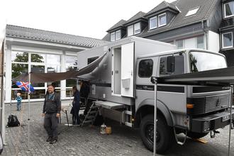 Expeditionsmobil von Michael und Heike Schmidt mit dem es nach island ging. Dabei handelöt es sich um einen Oldtimer auf Lkw Basis, Iveco Magirus 90-16 AWD Turbo mit GFK Kabine, Baujahr 1989