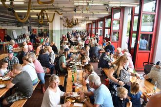 In der Fahrzeughalle waren Lindesn längste Tischreihen aufgebaut