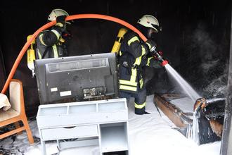 Die Brandbekämpfung der Einsatzabteilung verfolgten