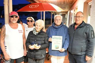 Dauerregen zur Abschlußfeier aber dafür einen Jahrhundert-Rekord in einem Sommer der Rekorde konnte zum Abschluß der 70. Freibad-Saison in Linden Bademeister Dirk Heil vermelden. Mit einer kleinen Feier verabschiedete sich das Bademeister-Team mit Dirk Heil, Andreas Bahn, Thomas Peter Fuchs und Maximilian Scheer nach 122 Öffnungstagen von den liebgewonnenen Dauerschwimmern. Es gab 2022 neue historische Rekordwerte. Einzig und allein der Dauerkartenverkauf blieb hinter dem der Coronajahre zurück. Mit 74.300 Besuchern konnte der bisherige Rekordwert dieses Jahrtausends aus dem Jahre 2003 mit 73.000 Besuchern noch übertroffen werden. Wurden 2021 insgesamt 2.262 Dauerkarten verkauft, so waren es in diesem Jahr lediglich 1.792 Dauerkarten. An 122 Tagen hatte das Freibad geöffnet und in diesem Zeitraum gab es 30 Tage mit Temperaturen von über 30 Grad, an 62 Tagen waren es zwischen 25 und 30 Grad und gerade mal an 30 Tagen lag die Außentemperatur bei unter 25 Grad. Am heißesten Tag des Jahres, am 19. Juli wurden bei 38 Grad insgesamt 3.000 Badegäste verzeichnet, was jedoch noch am 18. Juni übertroffen wurde, als 3.200 Besuchern bei 35 Grad im Freibad Abkühlung suchten. Erstmals seit 2014 sicherte sich Jutta Arnold (Großen-Linden) für die meisten Freibadbesuche wieder die Krone und wurde zur Freibad-Queen gekrönt. Hartmut Boller aus Langgöns (190 Besuche) und Werner Künz (Großen-Linden) mit 182 Besuchen folgten. Als „Newcomerin des Jahres“ wurde Anita Schön geehrt, die nach langjähriger Abstinenz nun als Dauerschwimmern zurückkehrte. Erstmals vom Bademeister-Team verliehen wurde ein „goldener Schuh“, den Ingrid Schaarschmidt (Großen-Linden) erhielt „die den kürzesten Weg auf selbstgebauter Treppe aus der Weinbergstraße hierherkommt“, wie Heil verriet. Ebenfalls eine Ehrung verdient hätte auch die bei der Abschlußfeier nicht anwesende Katharina Hölz aus Lützellinden, die von ihrem Arbeitsplatz in Monz/Belgien für einen Freibadbesuch 415 Kilometer zurücklegen mußte. Die Verbundenheit zum Lindener Freibad läßt sich bei Hölz jedoch leicht erklären, saß sie doch zu Kinderzeiten einst als Kassiererin an der Freibadkasse. Ein Novum gab es jedoch auch, denn noch nie war der Abschlußtag so verregnet wie in diesem Jahr – und am Schlußtag wurden gerade mal elf Badegäste gezählt – noch ein Minusrekord. Zur Freude der Teilnehmer an der Abschlußfeier zündete das Bademeister-Team noch ein Feuerwerk, das von Dauerschwimmern gespendet worden war.