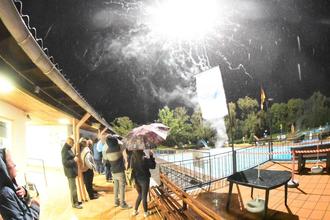 Mit einem Feuerwerk endete bei einer Außentemperatur von zehn Grad und Regen gegenüber einer Beckentemperatur von 19 Grad die Freibadsaison 2022. ©Fotos: Thomas Wißner
