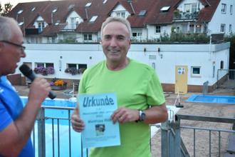 Matthias Rüb zeichnete sich laut Urkunde „in diesem Jahr durch regelmäßige Besuche als Newcomer des Jahres 2023 im Freibad Linden aus“