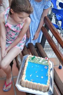 Barbara Kieslich vom Kassenteam des Freibads hatte eine „Freibad-Torte“ gebacken
