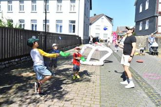 Im gesperrten Bereich der Kirchstraße war eine Spielstraße für die Kinder eingerichtet