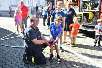und auch die Freiwillige Feuerwehr Leihgestern war mit einem Einsatzfahrzeug vor Ort. Hier gab es Wasserspiele