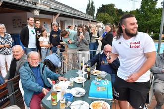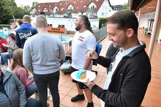 Der neue Fachgestellte für Bäderbetriebe Paul Maus hatte die Ehre die Torte anzuschneiden