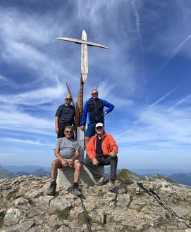 In diesem Jahr waren die Lindener Bergkameraden um Ulrich Lehnis, Reiner Schmandt aus Leihgestern mit Thomas Schmidt und Alfred Peppmöller aus Großen-Linden zum 25. mal seit 1996 im Rahmen einer Wanderwoche in den Alpen unterwegs. Lediglich die Corona-Pandemie unterbrach den jährlichen Rhythmus der Wanderungen. Die ebenfalls zum festen Kern der Gruppe zählenden Walter Balser und Robert Smith konnten aus privaten Gründen leider nicht an der Jubiläumstour teilnehmen. Ziel der Wanderwoche waren die Allgäuer Alpen in Oberstdorf, wo 1996 die abwechslungsreichen Aktivitäten der Lindener im Hochgebirge begannen. Nicht nur das Gefühl von Abenteuer, Zusammenhalt, Anstrengung, gegenseitiger Unterstützung, die Ruhe und die tollen Ausblicke von den Berggipfeln waren ursprünglich Inspiration für die Wandergruppe. Auch der Wunsch, gemeinsam immer neue Ziele und Wege in den Alpenregionen von Deutschland, Österreich, Italien und der Schweiz zu erkunden, sorgte für den Teamspirit. Ob dabei einen Klettersteig oder eine Bergtour im Hochgebirge absolviert wurde, spielte keine Rolle. Das Wichtigste war und ist, möglichst abseits von Menschenmassen auf schönen Wegen unfallfrei und gesund unterwegs zu sein. Frei nach dem Motto: „Am Ende bereut man die Dinge, die man nicht getan hat. Also geh in die Berge und finde neue Ziele!“ In den Anfangsjahren standen unter fachkundiger Begleitung durch einen Bergführer vor allem Klettersteige, wie z.B. Mindelheimer Klettersteig, Heilbronner Weg, Hindelanger Klettersteig, Mittenwalder Höhenweg, Piciadu, Tomaselli, Luca Innerkofler-Steig, die Höhenwege der Brenta und Touren zur Zugspitze auf verschiedenen Aufstiegsrouten, im Mittelpunkt. Später waren es dann Bergtouren am Wilden Kaiser, Karwendel, Rofan am Achensee, Berchtesgadener Land, Grödnertal, Sextener Dolomiten mit Drei Zinnen, Rosengarten, Latemar und vor allem Zermatt mit Gornergrat, Rothorn und der Hörnlihütte am Matterhorn sowie Wengen im Berner Oberland mit Lauberhorn und dem „Dreigestirn“ Jungfrau, Eiger, Mönch. Auch eine Alpenüberquerung auf dem Fernwanderweg E 5 von Oberstdorf nach Meran durfte naturgemäß nicht fehlen. Als ausgesprochen lohnenswerte Alternative zu den Bergtouren mit ganz anderen, neuen Eindrücken für die Teilnehmer, sind auch die 2023 absolvierten Teiletappen des Jakobsweg von Sarria nach Santiago de Compostela und weiter zum Cap Finisterre am Atlantik zu nennen. Die diesjährige Tour nach Oberstdorf (813 m) und ins benachbarte Kleinwalsertal stand ganz im Zeichen der Wanderregionen Nebelhorn, Fellhorn, Kanzelwand und Hoher Ifen. Wunderbares Wanderwetter begleitete die Lindener dabei durch die Woche. Die Gruppe startete mit einer Tour zur Fiderepasshütte (2.065 m), dem direkten Zustieg zum Mindelheimer Klettersteig über die drei Schafsköpfe. Nach ausgiebigem Genuss der Bergpanoramen führte der Abstieg über das Wildental zur Einkehr in die schön gelegene Fluchtalpe (1.390 m) und weiter hinunter nach Mittelberg (1.215 m) ins benachbarte Kleinwalsertal. Von dort ging es nach einem langen Tag mit dem Bus wieder zurück nach Oberstdorf. Der folgende Tag stand ganz im Zeichen des Nebelhorns (2.224 m) mit einem spektakulären Blick auf die Alpengipfel ringsherum. Von der Station Höfatsblick folgt ein Steig dem Südgrat entlang zum Gipfel und auf einer Stahlkonstruktion am Nordwandsteig einmal rund um den Gipfel, 600 m Blick in die Tiefe inklusive. Auf felsigem Weg ging es unterhalb des Hindelanger Klettersteigs weiter zur Kobalt-Hochebene und auf einem Panoramaweg zurück zum Edmund Probst Haus. Den Abschluss der schönen Wanderung mit vielen Eindrücken genossen wir in der Abendsonne der Seealpe. Zwischen Deutschland und Österreich wartete mit dem Fellhorn (2.037 m) und der Kanzelwand (2.058 m) ein echtes 2-Länder-Erlebnis. Vom Fellhorn ging unsere Wanderung über den Riezler Alpsee weiter zum eigentlichen Einstieg des Kanzelwandgipfels. Über viele Stufen, Seilbrücken und ausgesetzte Felspassagen erreichten wir den Gipfel. Die beeindruckende Sicht auf die benachbarten Berge zeigte anschaulich, welches Ziel uns am nächsten Tag erwarten sollte. Die Einkehr in der Oberen Bierenwangalm auf dem Abstieg war die Belohnung für ein schönes Bergerlebnis. Gut vorbereitet führte uns die nächste Tagestour in die Gipfelregionen des Hohen Ifen (2.228 m). Bizarr, geheimnisvoll und mystisch, so die Legende, ist der Ifen das alpine Wahrzeichen des Kleinwalsertals und zudem einer der wenigen Tafelberge Europas. Um den Ifen und das Hahnenköpfle (2.080 m) herum befindet sich das einzigartige Gottesackerplateau, ein 10 Quadratkilometer großes Karstgebiet mit Steinfeldern und schroffen Gesteinsformationen. Der Abstieg führte über die Ifenhütte und das Wäldele in die schöne Auenhütte (1.275 m). Abgeschlossen wurde die Wanderwoche in Oberstdorf mit einer gemütlichen Relax-Tour durch die Breitachklamm zur Alpe Dornach und einer fachkundigen Führung durch die WM-Skisprung-Arena am Schattenberg mit Blick hinter die Kulissen des Skispringens und interessanten Schanzeninformationen. Auf ein Neues in 2024.