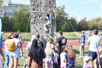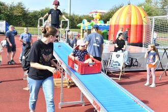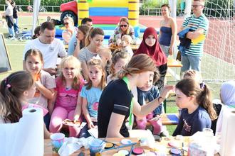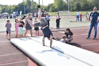 Herrliches Wetter zum kalendarischen Herbstbeginn und großer Andrang beim ersten FamilyFunTag am vergangenen Sonntag im Stadion im Stadtzentrum. Die städtische Jugendpflege hatte mit den Sozialarbeiterinnen der Burgschule Großen-Linden, Anne-Frank-Schule (AFS) und der Wiesengrundschule Leihgestern sowie der Gemeinwesensarbeit diesen ersten Sport und Spaß Tag für Familien in Linden auf die Beine gestellt. Neben den Fördervereinen der drei Schulen hatte sich lediglich der Modellflugclub Leihgestern (MFCL) mit einem Stand im Stadion eingebracht, während die Freiwillige Feuerwehr Großen-Linden vor dem Eingangstor mit einem Fahrzeug eine Schlauch-Spaß-Aktion aufgebaut hatte.