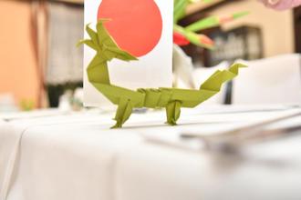 Gudrun Sturm hatte passend als Tischdekoration Origami-Drachen angefertigt