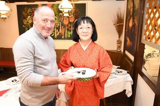 Begrüßt wurden die Gäste von Eri Weller, die in einen Kimono gekleidet wie hier Uwe Bein jedem Besucher einen Teller mit Sushi überreichte. Damit bedankte sich der Vereinsvorstand bei den Mitgliedern für ihre Treue, wurden zwar keine Beiträge eingezogen aber auch keine Veranstaltungen und Besuche während der Pandemiejahre 2020 und 2021 durchgeführt.