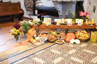 Zum Erntedankfest waren die Gaben im Altarraum aufgebaut. ©Fotos: Thomas Wißner