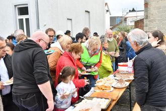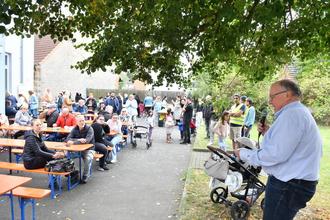 an der aufgebauten Kuchentafel eingefunden hatten