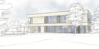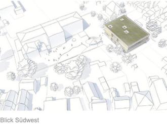 Dort wo noch der Doppelstockcontainer steht und sich die Baustelle der abgerissenen Lindenschule befindet soll der Neubau