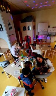 Die Kinder konnten sich bei den Glühwürmchen nach Herzenslust schminken lassen oder in der Sternenbanden-Gruppe Geburtstagskarten zum Einjährigen gestalten.