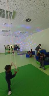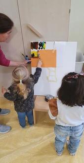 Im Turntaum lief den ganzen Vormittag Musik und Tanzen und Spielen war angesagt. Im Atelier der Kita konnte ein gemeinschaftliches Bild auf einer großen Leinwand gestaltet werden.